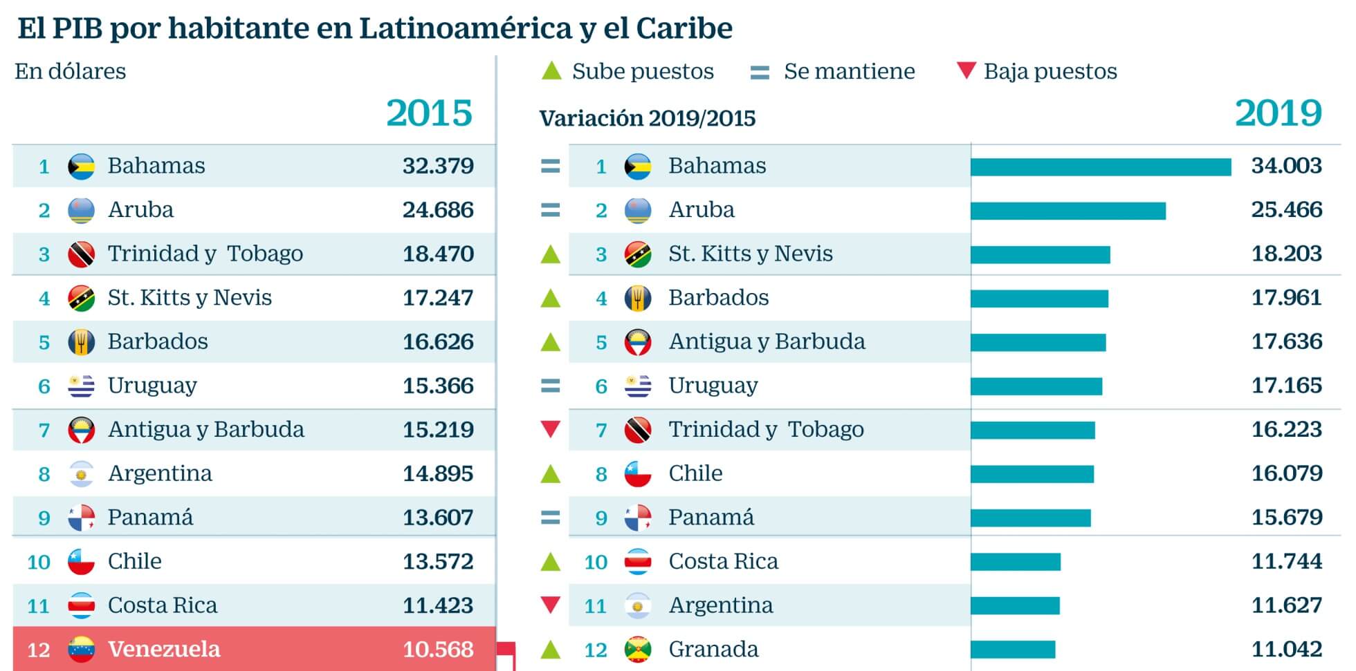 El País Solo Honduras, Nicaragua y Haití tienen un PIB por habitante inferior, según el FMI Venezuela fue durante décadas... Leer más.