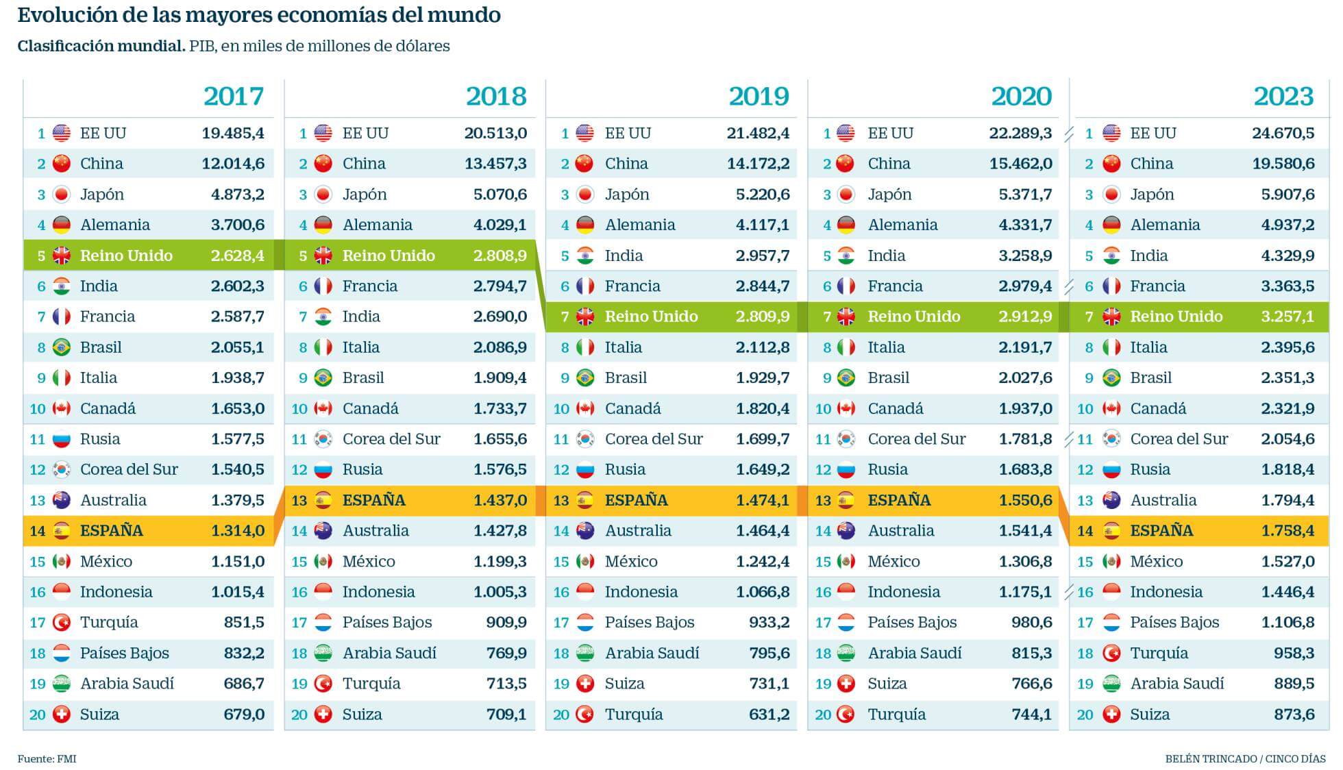 Por Juande Portillo El País,Madrid El ránking de los mayores países del mundo está en plena transformación. La batalla por los primeros puestos... Leer más.