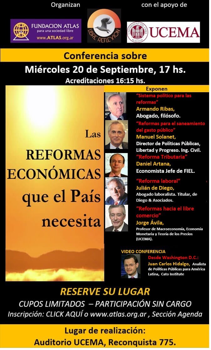 Conferencia en Buenos Aires este miércoles 20: Las reformas económicas que el país necesita Fundación Atlas... Leer más. 18 de septiembre, 2017